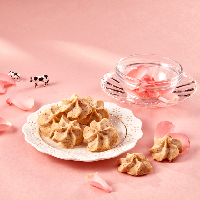 - These cookies are made with top-quality imported GOLDEN CHURN natural fermented cream from Australia, and carefully selected food-grade rose petals are blended into the dough and baked together, allowing you to savor a romantic fragrance in every bite.